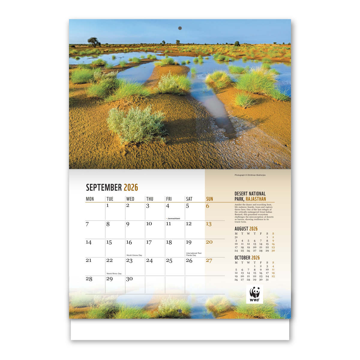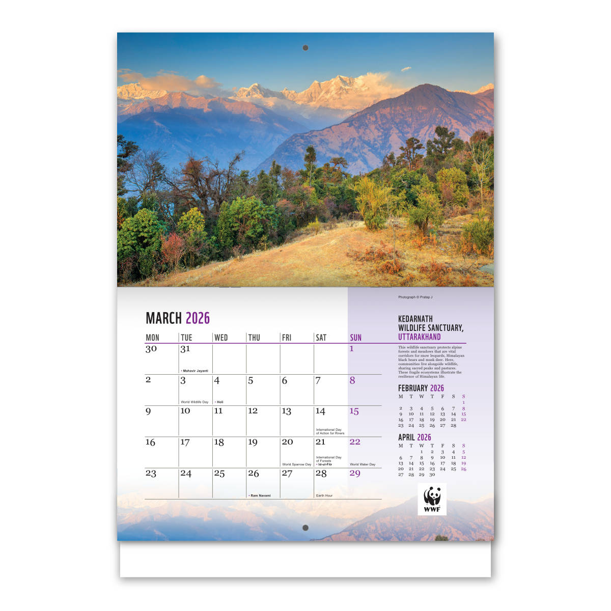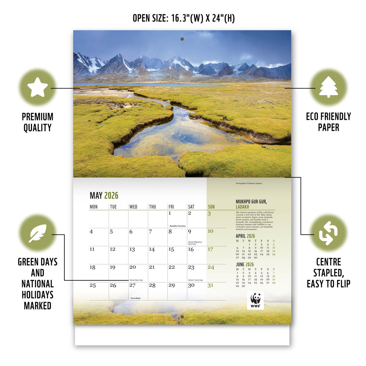 Experience the breathtaking beauty of India’s wild landscapes with WWF-India’s 2026 Wall Calendar – Naturescapes.